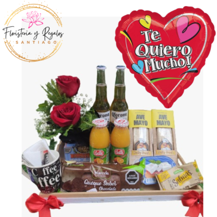 DESAYUNO PARA DOS CON 2 CERVERZAS Y TOQUE FLORAL