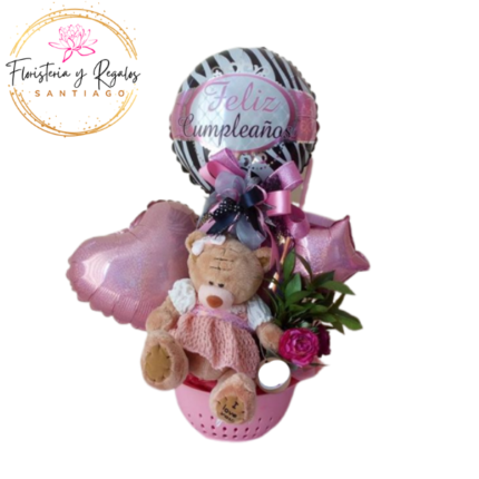 ARREGLO DE PELUCHE 25CM 3 GLOBOS 1 ROSA