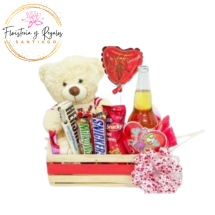 ARREGLO DE PELUCHE 25CM 4 CHOCOLATES IMPORTADOS + CERVEZA Y GLOBO