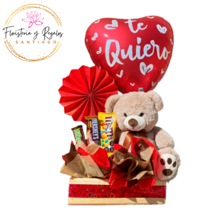 ARREGLO DE PELUCHE 25CM 3 CHOCOLATES IMPORTADOS + GLOBO