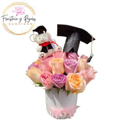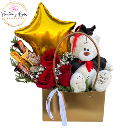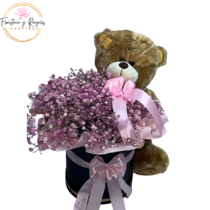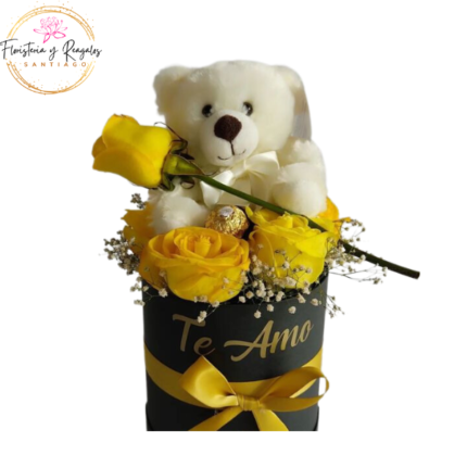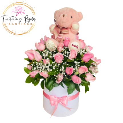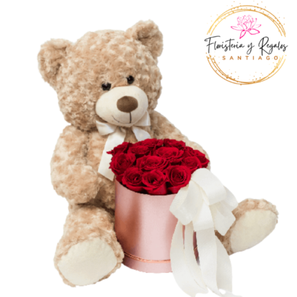 CAJA BOX DE 12 ROSAS IMPORTADAS Y PELUCHE 25CM