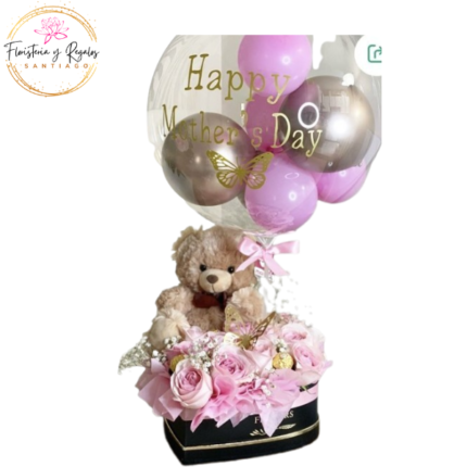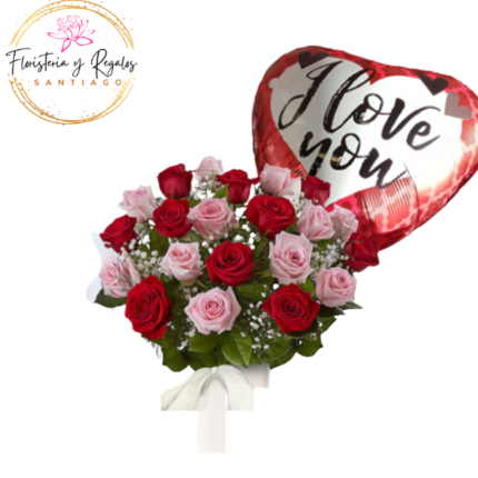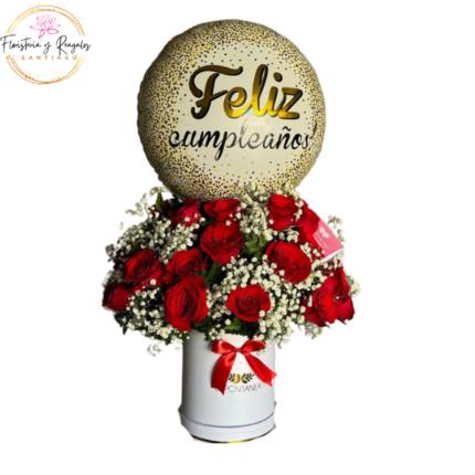 BOX LAS CONDES DE 12 ROSAS, GLOBO Y GYSPOPHILA