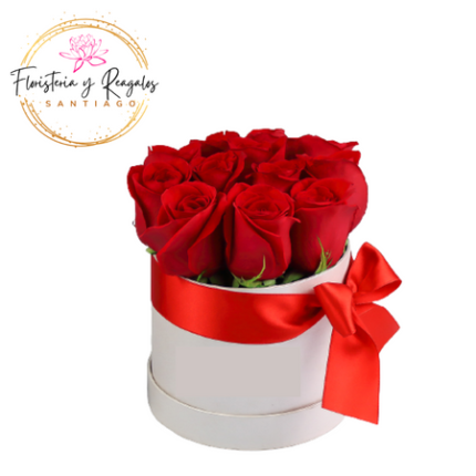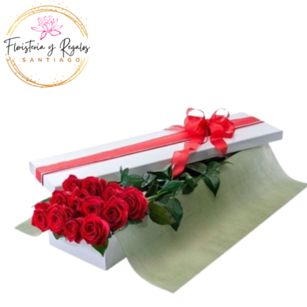 CAJA BOX DE 12 ROSAS IMPORTADAS Y FOLLAJE ROJO