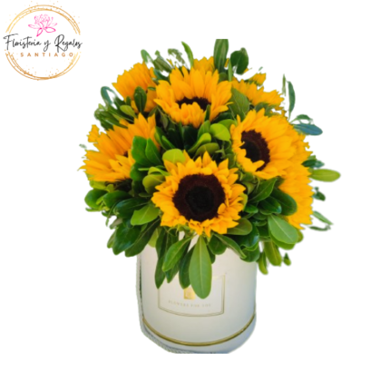 CAJA BOX DE 10 GIRASOLES Y FOLLAJE