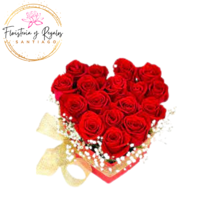 CAJA CORAZON DE 28 ROSAS Y 13 BOMBONES