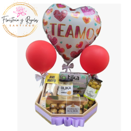 BANDEJA FELIZ + PAN + GALLETA + BUKA + ACEITUNA + FERREROS ROCHER + GLOBO