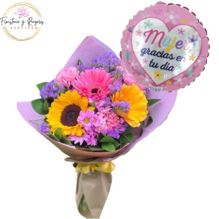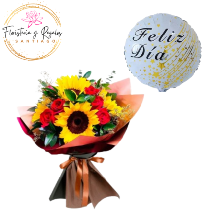 RAMO 3 ROSAS, 2 GIRASOLES Y GLOBO