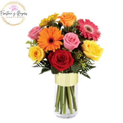 FLORERO 6 ROSAS Y 3 GERBERAS