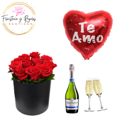 BOX DE 10 ROSAS + CHAMPAGNE + COPAS + GLOBO