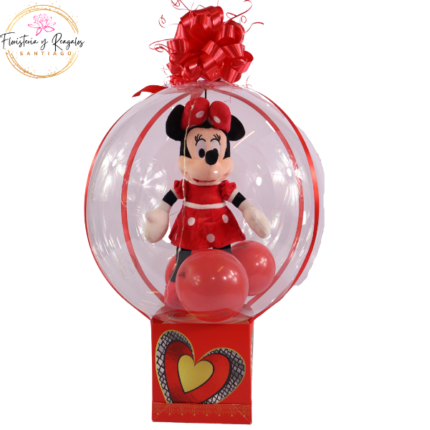 CAJA ESPECIAL CON GLOBO BURBUJA Y PELUCHE DE MINNIE