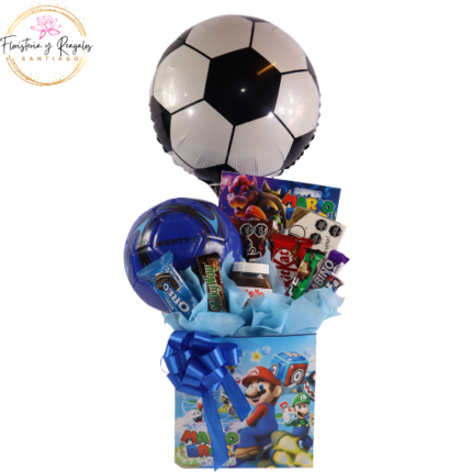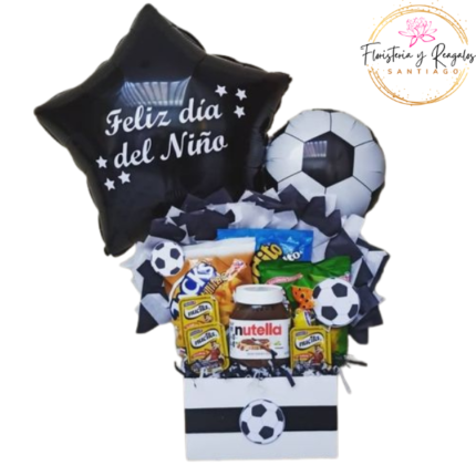 CAJA ESPECIAL CON PELOTA, 1 NUTELLA, 1 VIZZIO, 4 CHOCOLATES NACIONALES, 3 CHOCOLATES IMPORTADOS Y GLOBO