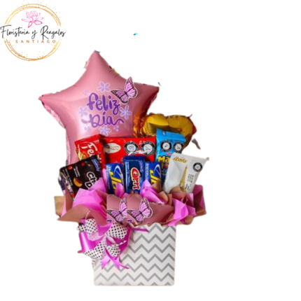 BOX SONRISAS CON GLOBOS Y CHOCOLATES