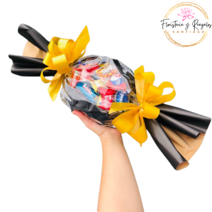 ARREGLO CON PELUCHE, 6 GOLOSINAS NACIONALES Y GLOBO