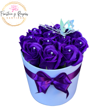 BOX CUADRADO CON 8 ROSAS JABON Y FERREROS DE 100G