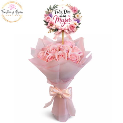 RAMO 12 ROSAS DE JABON CON LINDA ENVOLTURA Y TOPPER DIA DE LA MUJER