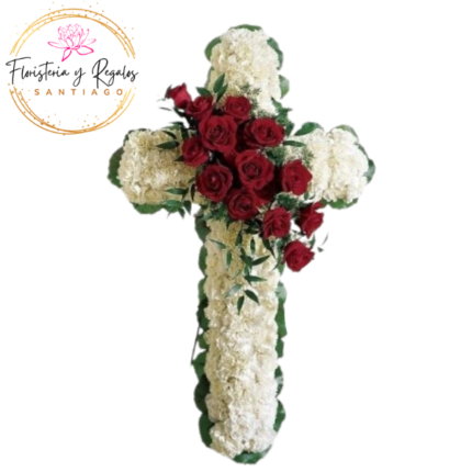 CRUZ FUNEBRE FLECHADA DE ROSAS Y ATRIL