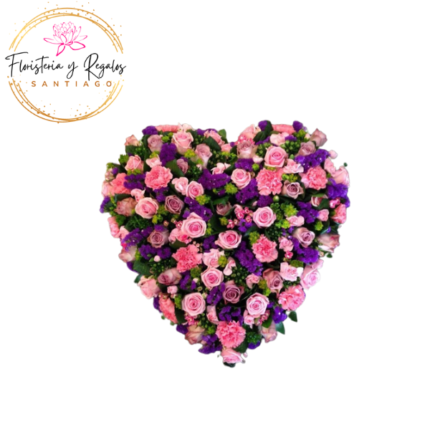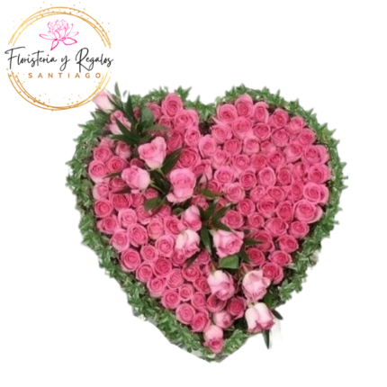 CORONA CORAZON FLECHADO EN ROSAS Y ATRIL