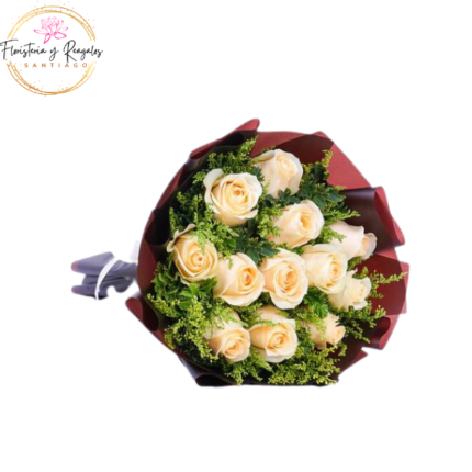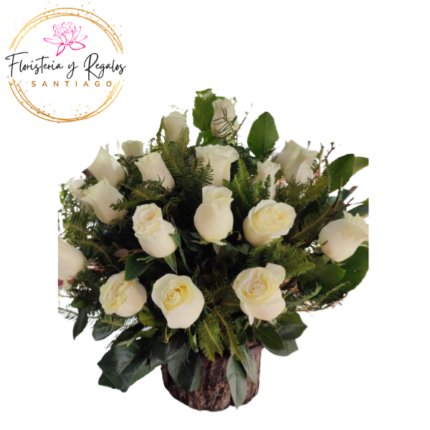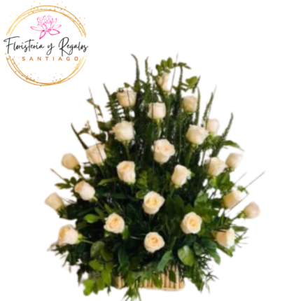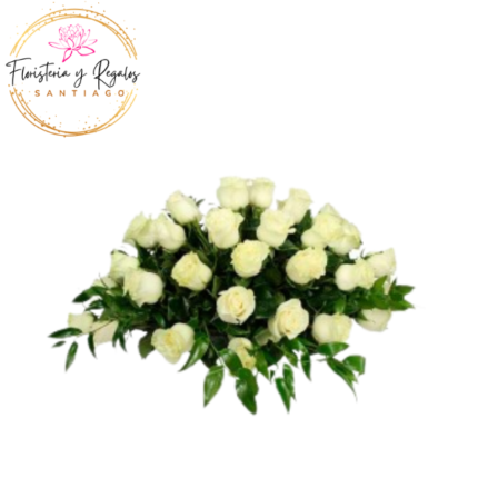 ARREGLO FUNEBRE CON 8 ROSAS ETERNAS Y FOLLAJE