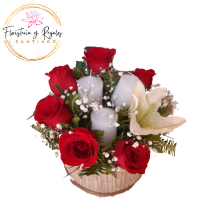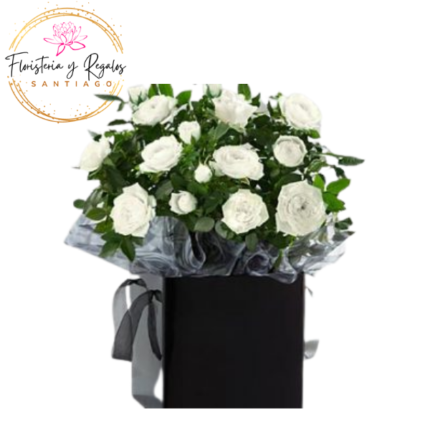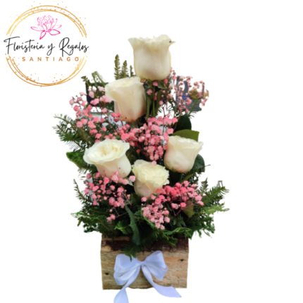 BOX DE 8 ROSAS, MARGARITAS, FOLLAJE Y VELON