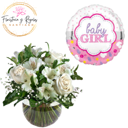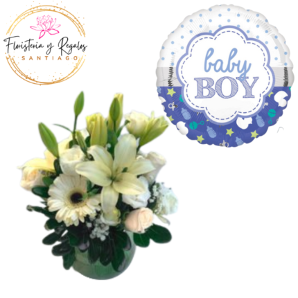 FLORERO 12 ROSAS 6 LILIUM + GLOBO