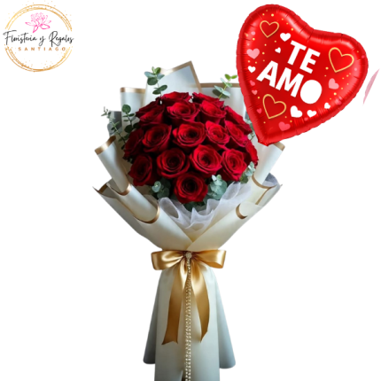 RAMO FLORAL 20 ROSAS Y GLOBO