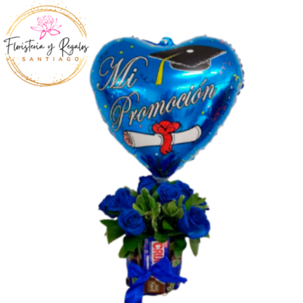 ARREGLO DE 6 ROSAS + 1 CHOCOLATE Y GLOBO