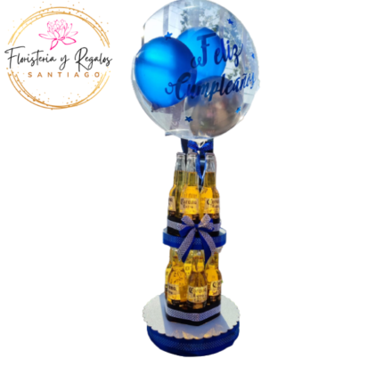 BASE HEXAGONAL DE 5 CERVEZAS, BOMBONES Y GLOBO