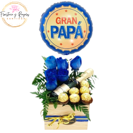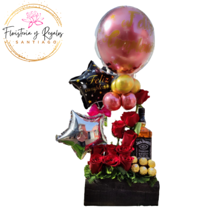 GUACAL 6 ROSAS, 6 BOMBONES, CHAMPAGNE 375ML Y GLOBO