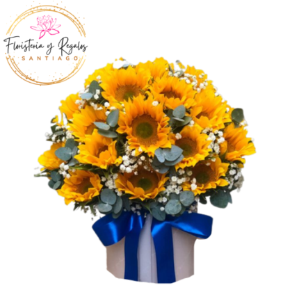 CAJA BOX DE 20 GIRASOLES Y FOLLAJE