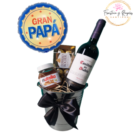 HIELERA CON VINO, BOMBONES, NUTELLA Y GLOBO
