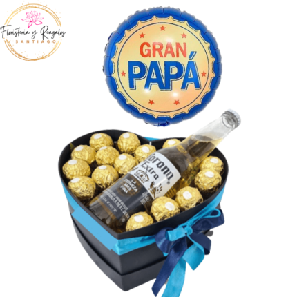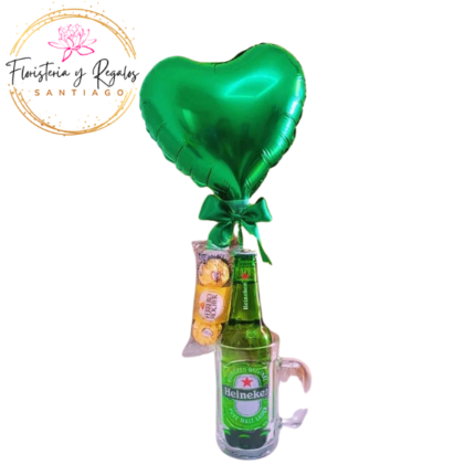 CAJA CORAZON DE 15 BOMBONES, CERVEZA Y GLOBO