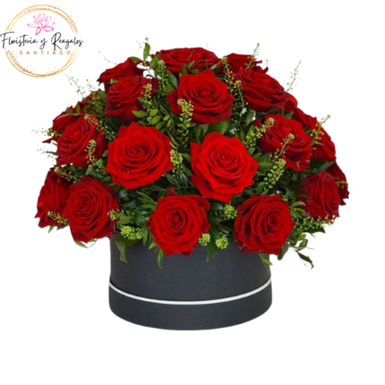 CAJA BOX DE 12 ROSAS IMPORTADAS Y FOLLAJE