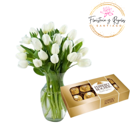 FLORERO DE 20 TULIPANES Y FERREROS ROCHER 100GRS