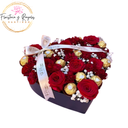 CORAZON DE 18 ROSAS 10 BOMBONES E ILUSION