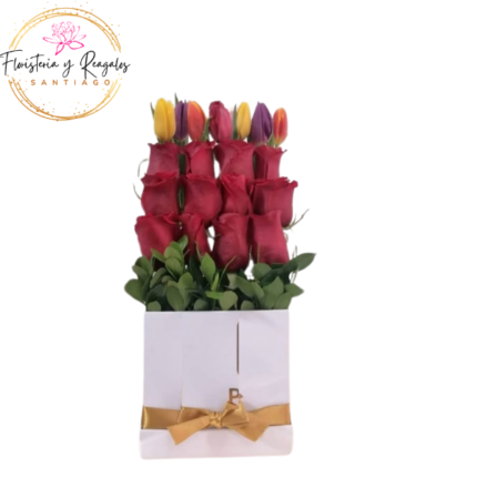 CAJA BOX DE 10 TULIPANES Y 10 ROSAS ECUATORIANAS