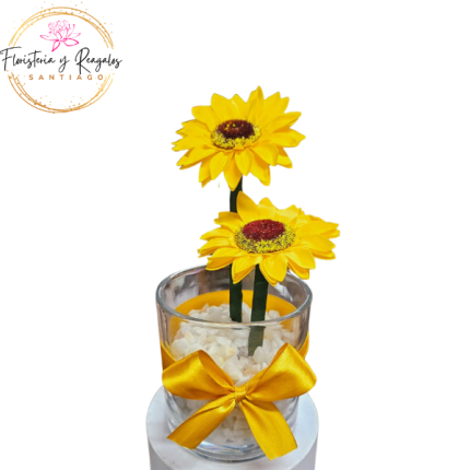 RAMO SANTIAGO DE 3 GIRASOLES JABON Y GLOBO METALIZADO