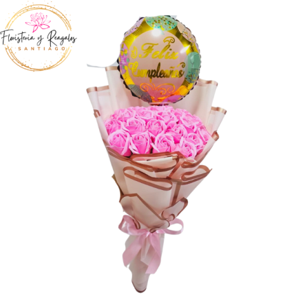 RAMO DE 30 ROSAS DE JABON CON GLOBITO DE CUMPLEAÑOS
