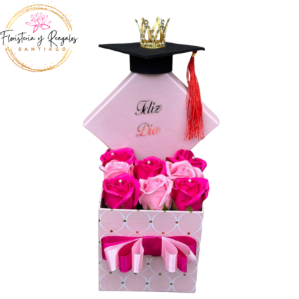 RAMO TENDENCIA CON 6 ROSAS JABON, GLOBOS INCRUSTADOS Y LINDA ENVOLTURA
