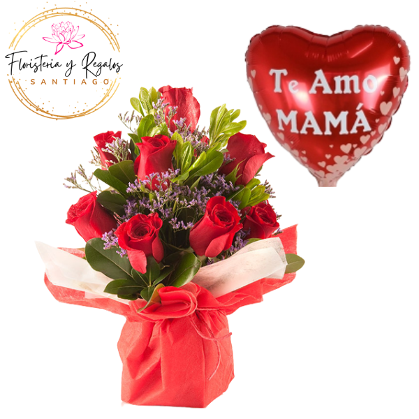 InicioFLORES Y RAMOS DIA DE LAS MADRES ARREGLO DE 8 ROSAS + GLOBO