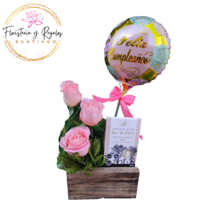 ARREGLO DE 3 ROSAS + BOMBONES DEL SUR + GLOBITO
