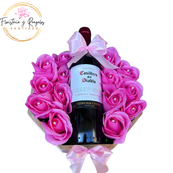 BASE HEXAGONAL 15 ROSA ETERNAS Y BOTELLA DE 750 ML