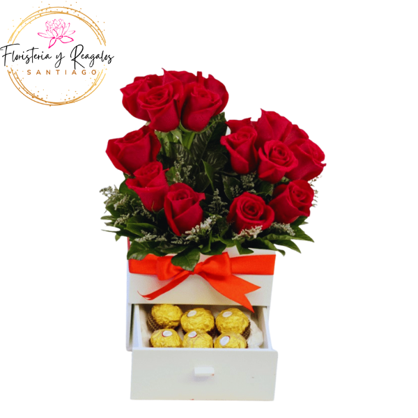 BOX 18 ROSAS CON BOMBONERA 6 BOMBONES