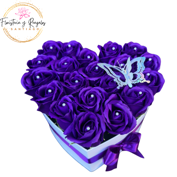 CORAZON 24 ROSAS ETERNAS Y MARIPOSA