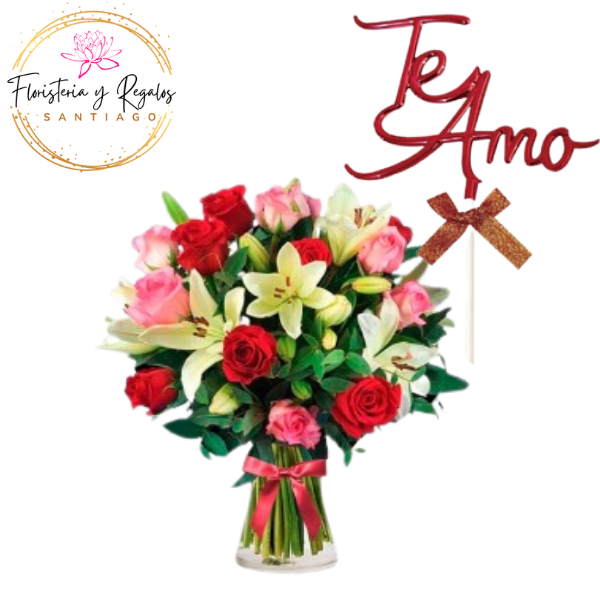 ESPECTACULAR FLORERO DE 10 ROSAS 6 LILIUM + TOPPER
