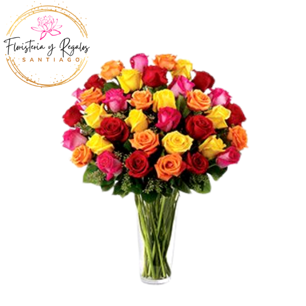 ESPECTACULAR FLORERO DE 10 ROSAS 10 GERBERAS + TOPPER