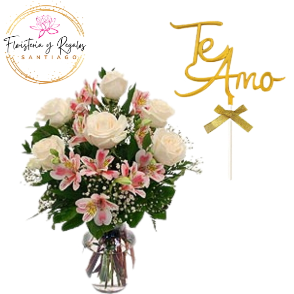 FLORERO DE 6 ROSAS Y FOLLAJE + TOPPER