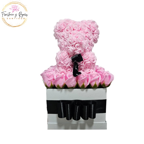 CAJA BOX DE 12 ROSAS IMPORTADAS Y PELUCHE 25CM