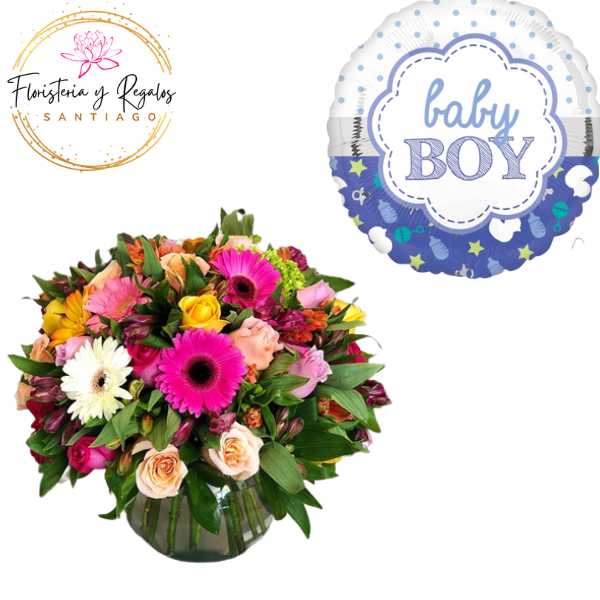 PECERA CON MIX FLORAL + GLOBO