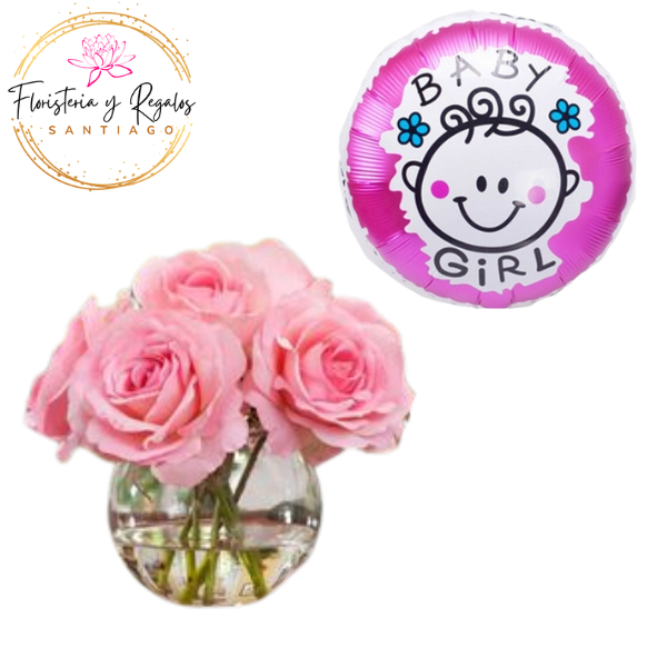 FLORERO DE 8 ROSAS + GLOBO $29.590