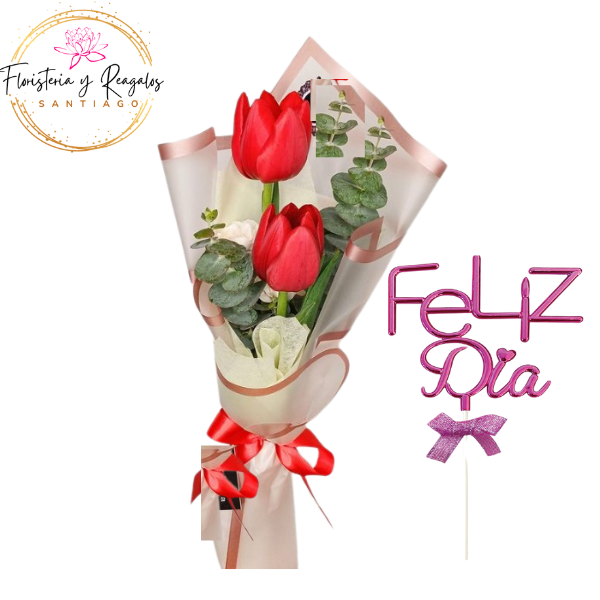 InicioFLORES Y RAMOS DIA DE LAS MADRES PRECIOSO RAMO DE 2 TULIPANES Y TOPPER